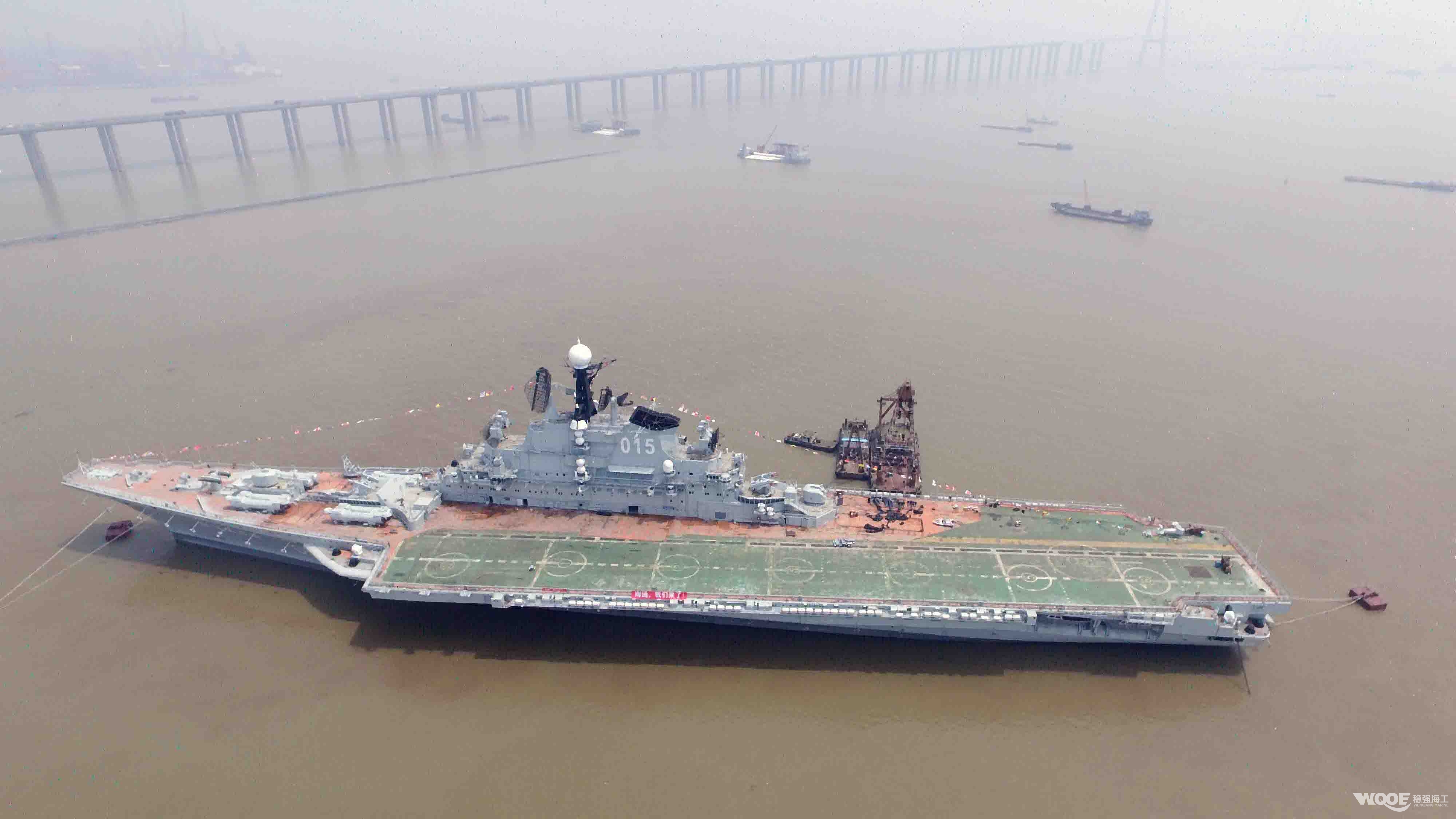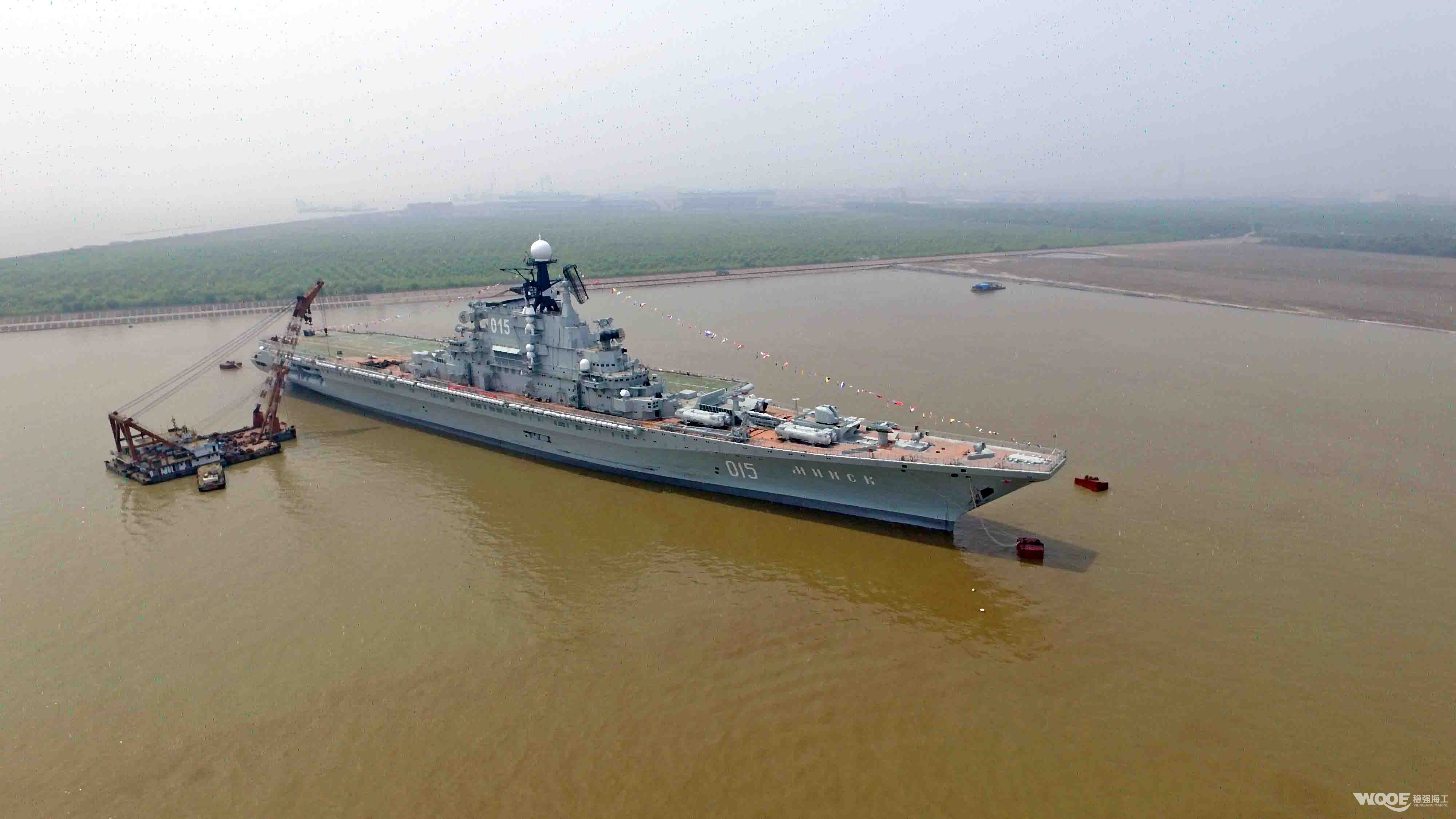 明斯克号航空母舰,为前苏联建造,船长273.1米、型宽49.2米 ,排水量41380吨,曾为世界第五大航空母舰。我司有幸参与该航母的锚泊任务,据了解明斯克号航母将在苏通科技产业园打造世界级航母主题公园;