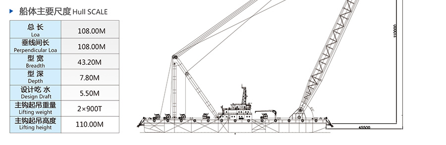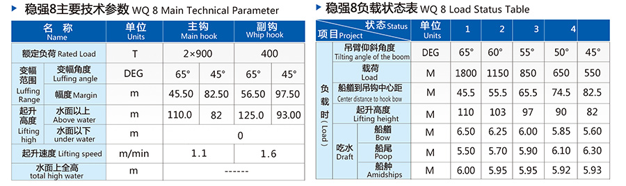 稳强8(1800T非自航起重船)主要技术参数: